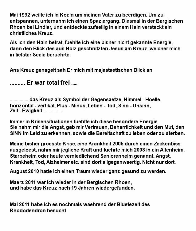 entspannen, unternahm ich einen Spaziergang. Diesmal in der Bergischen Rhoen bei Lindlar, und entdeckte zufaellig in einem Hain versteckt ein christliches Kreuz.